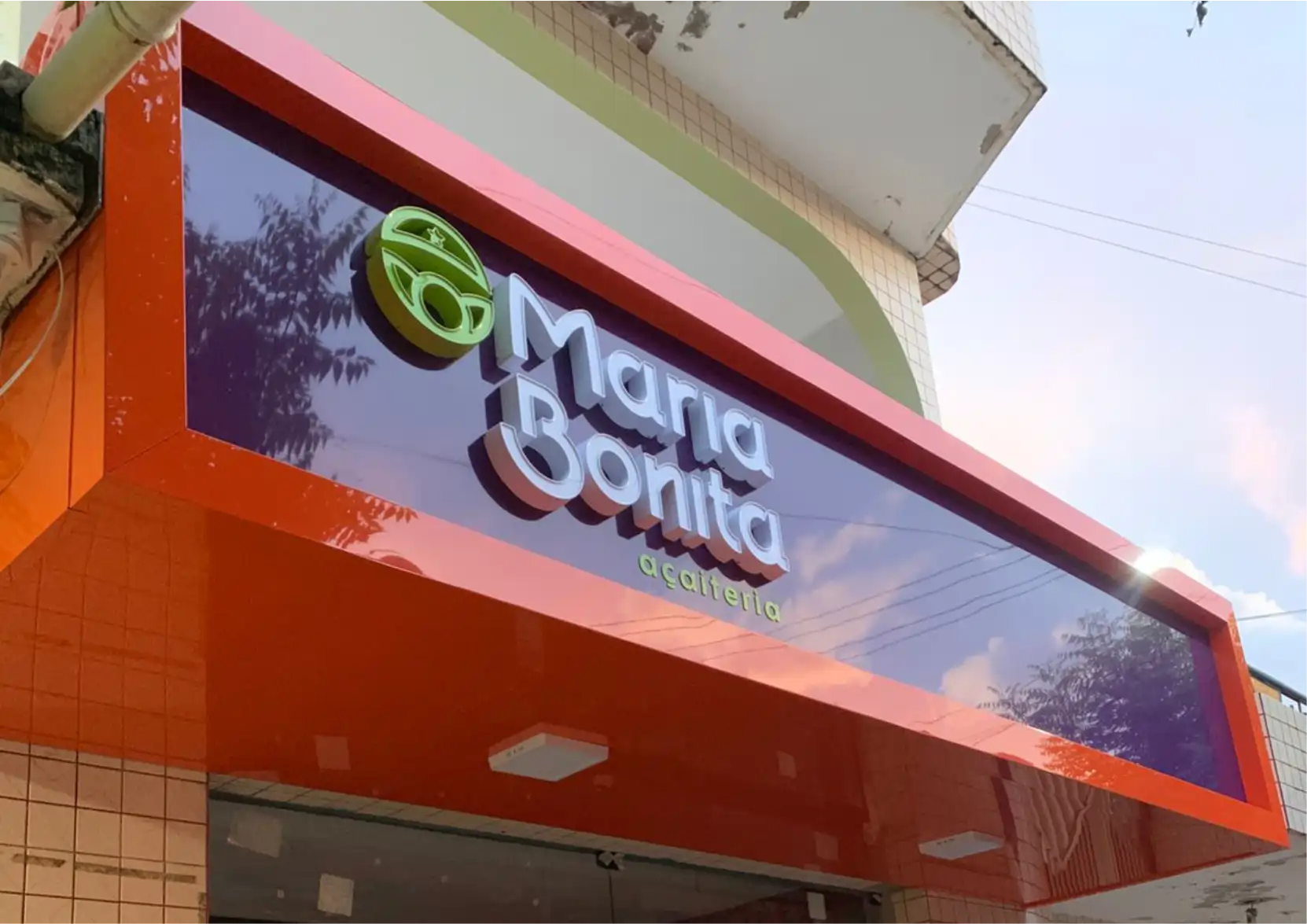 PLACA DE ACM COM LETRA CAIXA - MARIA BONITA AÇAITERIA